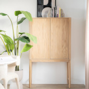 De Harvey vakkenkast combineert functionaliteit met een frisse, Scandinavische look. Het lichte eikenhout en de afgeronde hoeken zorgen voor een zachte, natuurlijke uitstraling die direct sfeer toevoegt aan je interieur. Dankzij de slimme indeling en push-to-open deuren oogt de kast strak en minimalistisch, zonder in te leveren op opbergruimte.