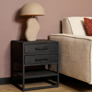 De zwarte sidetable van Starfurn uit de New York serie is niet zomaar een meubelstuk; het is een veelzijdige toevoeging aan elk interieur. Of je het nu gebruikt als sidetable in de hal, als kaptafel in de slaapkamer of als extra opbergruimte in de woonkamer, deze sidetable is een ware eyecatcher. Het tafelblad, vervaardigd van zwart afgewerkt mangohout met een visgraat patroon en een gezandstraalde afwerking, straalt elegantie en karakter uit. De zichtbare en voelbare houtstructuur geeft de tafel een unieke uitstraling die past bij verschillende interieurstijlen. Het onderstel van zwart gelakt metaal zorgt niet alleen voor stabiliteit, maar voegt ook een vleugje industrieel design toe aan het gehele plaatje.